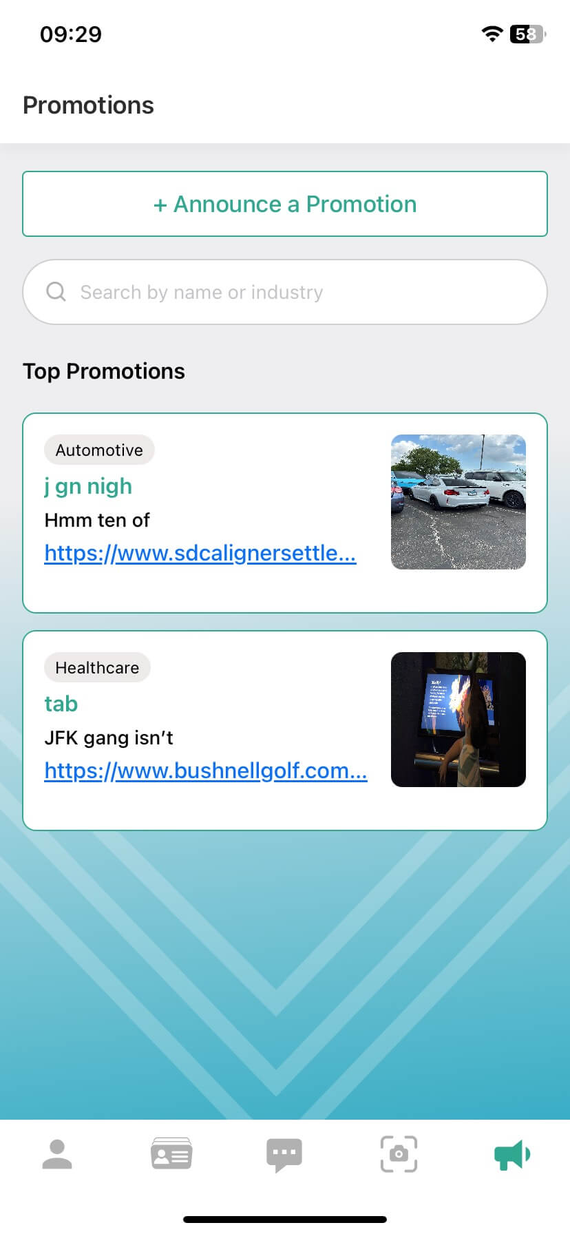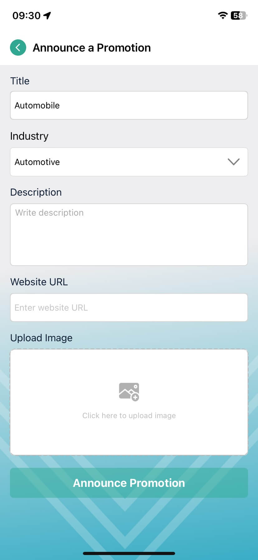 Promote your business, service, or event by creating a custom post. Add a title, industry, description, link, and image. Once submitted, it’s shared with app users