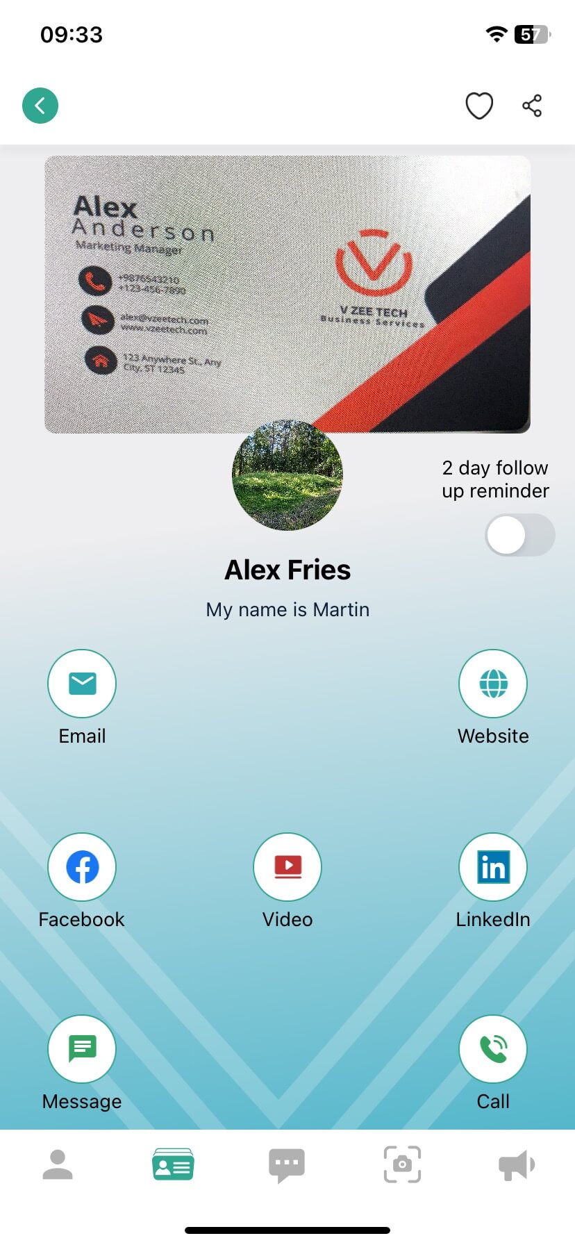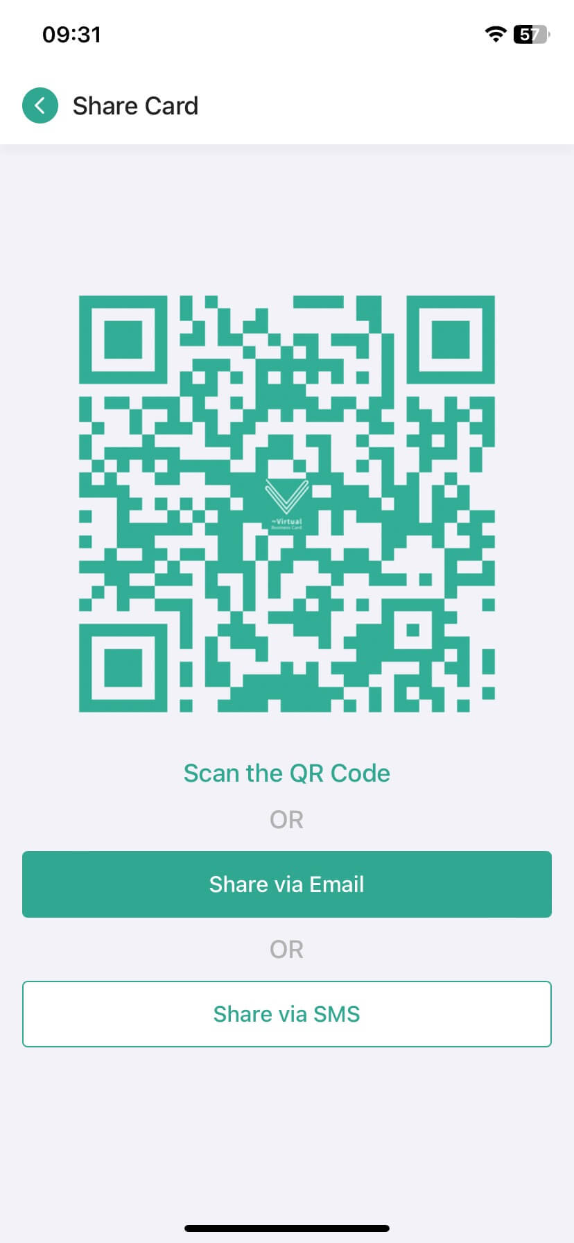 3. Easy to share and receive information: Share the virtual business card either through email, a QR code, a link, WhatsApp, and much more. Anyone who is not on the app can also receive the data easily.